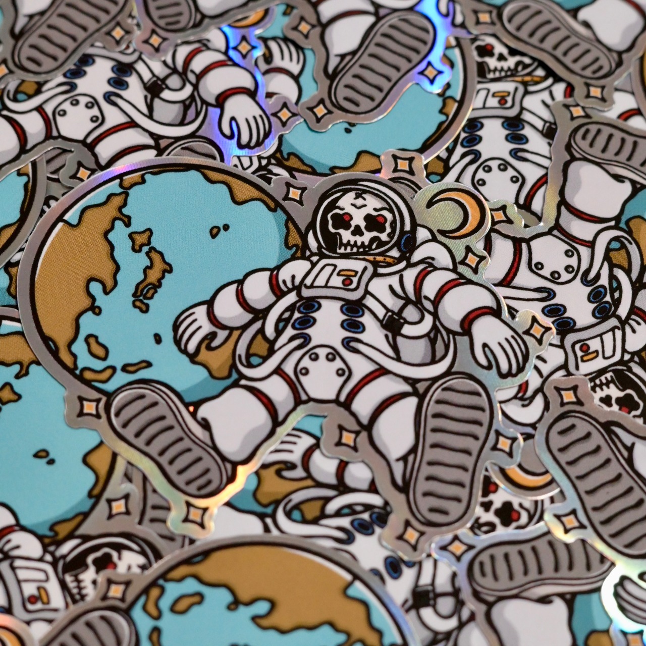 「宇宙飛行士 スカル」 ステッカー タトゥー ホログラム / Dead Astronaut Hologram Tattoo Sticker